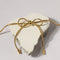 The intricate design of the gold bow showcases meticulous craftsmanship, with each curve and fold reflecting light in a way that adds depth and dimension to the piece. The white stone, smooth and polished, serves as a flawless foundation, grounding the ethereal quality of the gold. Complemented by a delicate rope that ties the elements together, this decorative item embodies a harmonious blend of textures and colors, inviting admiration from every angle.