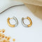 The harmonious blend of warm gold and cool silver creates a striking contrast, ensuring that these hoops are not just jewelry, but a statement of sophistication. Lightweight and comfortable, they are perfect for all-day wear, allowing you to shine with confidence at any occasion.
