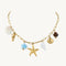 Every detail of the Sea Treasures Necklace tells a story of the ocean's wonders. Adorned with intricately detailed starfish, graceful seahorses, and elegant shells, this piece is a celebration of marine life that will transport you to sun-kissed shores with every wear. The adjustable chain allows for a perfect fit, ensuring that this statement piece can be worn with ease, whether you’re dressing up for a special occasion or adding a touch of elegance to your everyday attire.