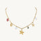 Indulge in the allure of the ocean with our exquisite Gold Chain Necklace, a stunning piece that captures the essence of coastal elegance. Crafted from high-quality gold, this necklace features a delicate chain that gracefully drapes around your neck, exuding a sense of sophistication and charm. The centerpiece of this enchanting design is a beautifully detailed starfish, complemented by intricately crafted sea shells and shimmering sea stars, each element meticulously designed to evoke the serene beauty of the seaside.